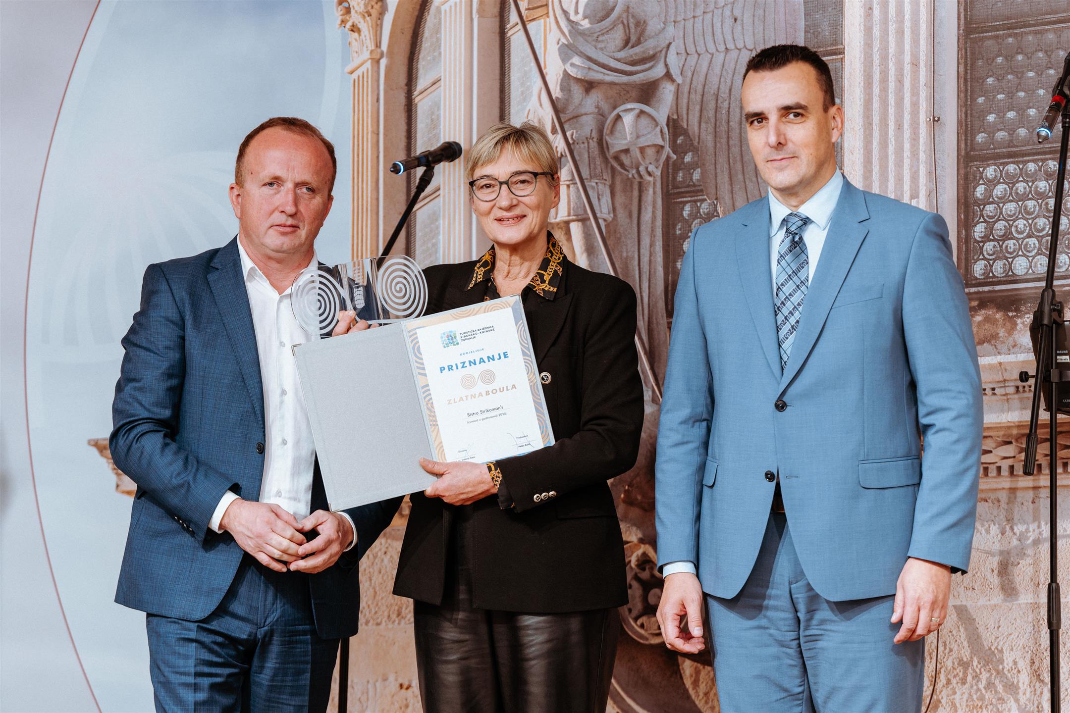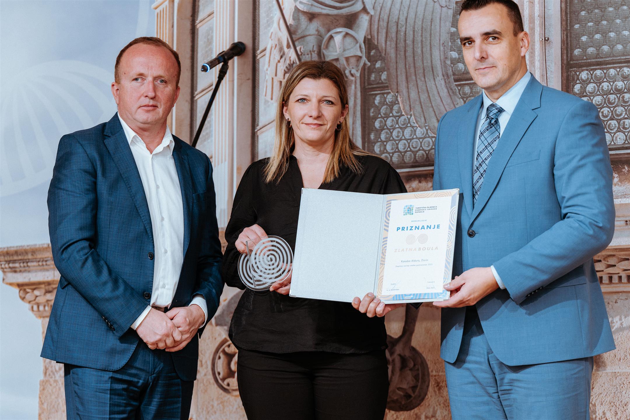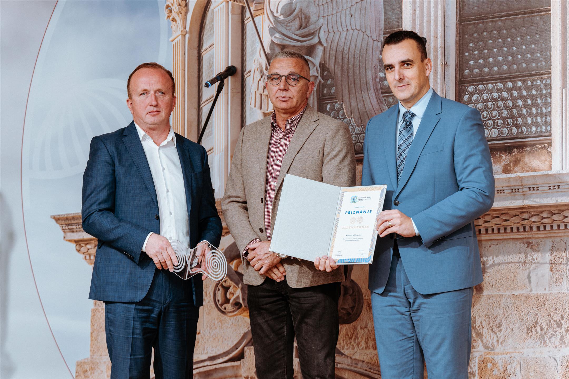 U svečanom ambijentu Interpretacijskog centra „Civitas sacra“ danas je održana dodjela godišnje nagrade „Zlatna boula“, prestižnog priznanja Turističke zajednice Šibensko-kninske županije. Dodijeljeno je ukupno 19 priznanja uz nagrade za najbolje iznajmljivače, a uručili su ih šibensko-kninski župan Paško Rakić i direktor Turističke zajednice, mr. sc. Krešimir Šakić.