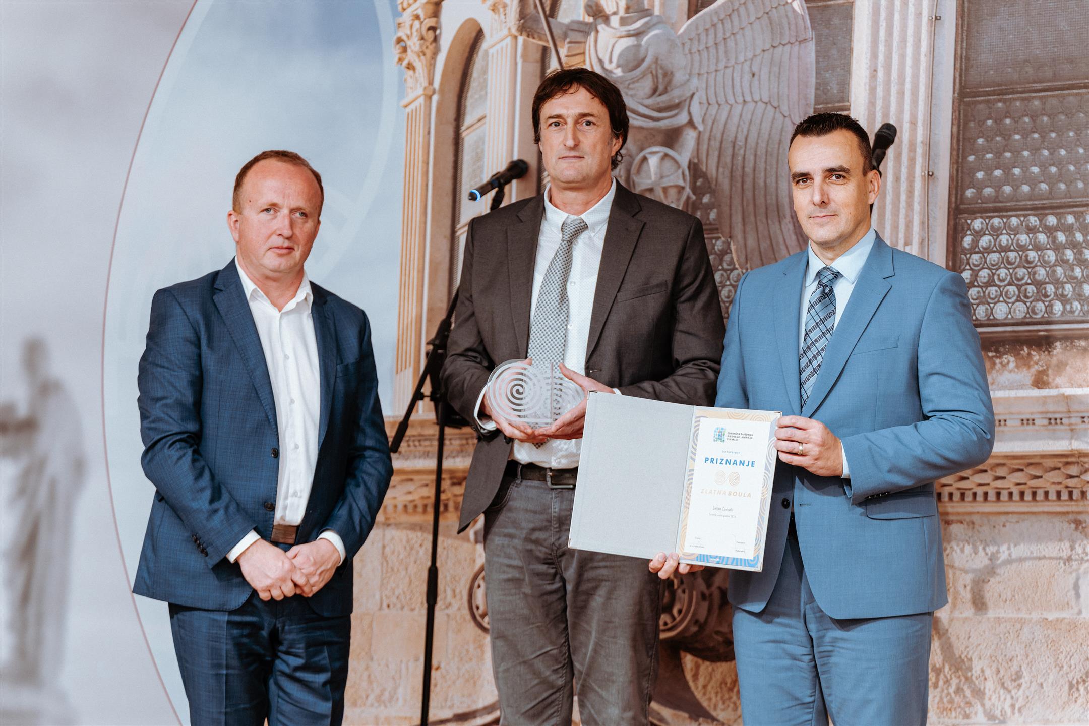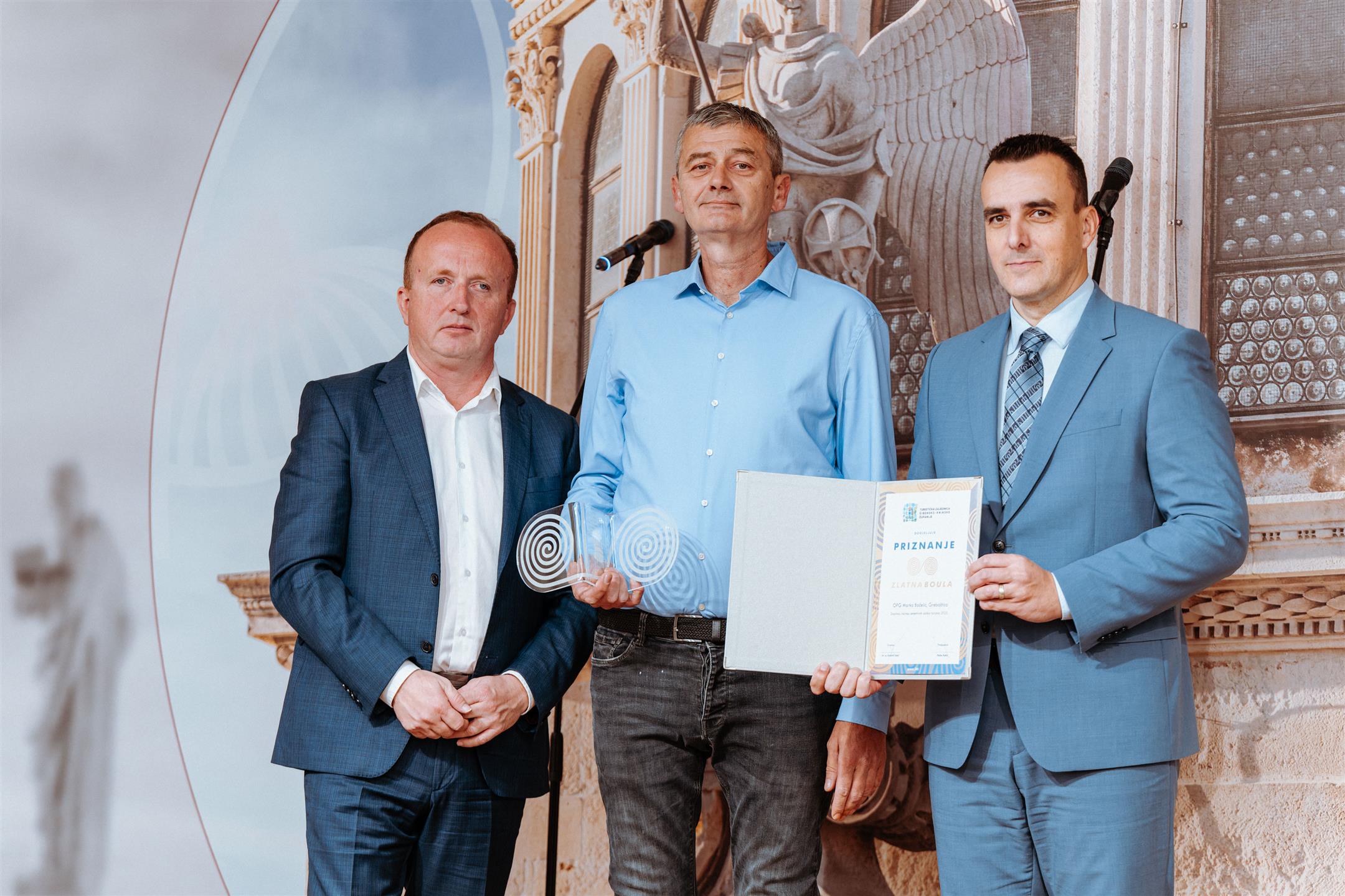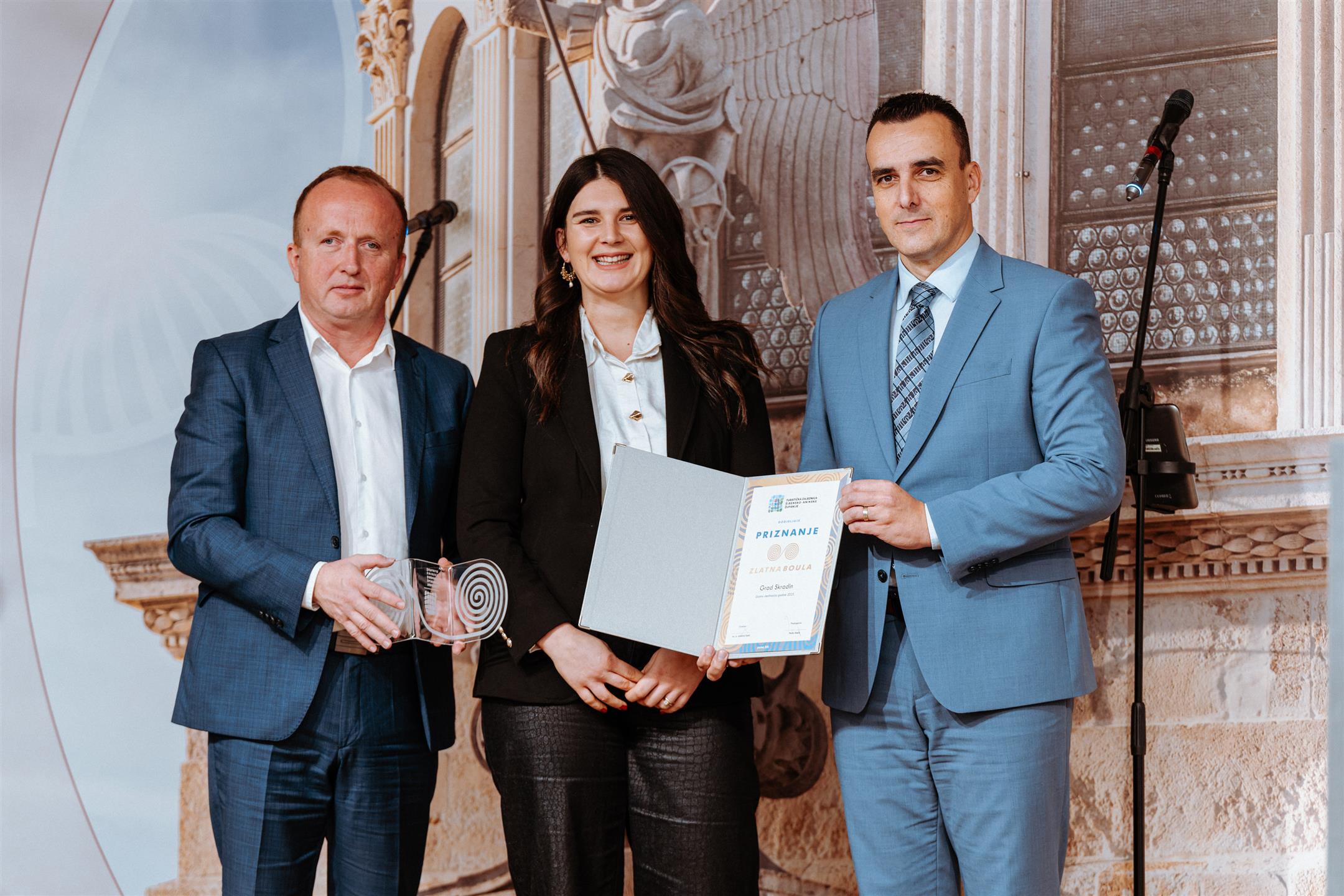 U svečanom ambijentu Interpretacijskog centra „Civitas sacra“ danas je održana dodjela godišnje nagrade „Zlatna boula“, prestižnog priznanja Turističke zajednice Šibensko-kninske županije. Dodijeljeno je ukupno 19 priznanja uz nagrade za najbolje iznajmljivače, a uručili su ih šibensko-kninski župan Paško Rakić i direktor Turističke zajednice, mr. sc. Krešimir Šakić.