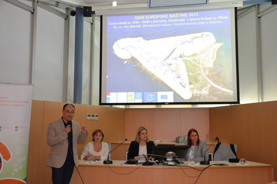 Predavanje je održao u sklopu obilježavanja Dana europske baštine, a predavači su bili ravnateljica Javne ustanove Priroda Šibensko-kninske županije gđa. Anita Babačić Ajduk, šibenski konzervator g. Ivo Glavaš i voditeljica Odjela za graditeljsku baštinu u Hrvatskom restauratorskom zavodu gđa. Ana Škevin Mikulandra.