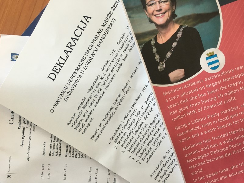 Na inicijativu veleposlanika Kanade, Nj.E. Daniela Maksymiuka, veleposlanice Kraljevine Norveške, Nj.E. Astrid Versto i zamjenice gradonačelnika Zagreba dr.sc. Jelene Pavičić Vukičević izrađena je Deklaracija koja je temelj osnivanja neformalne Nacionalne mreže žena dužnosnica u lokalnoj samoupravi. Ciljevi Deklaracije uključuju osnaživanje i aktivno povezivanje žena u politici na županijskoj, gradskoj i lokalnoj razini, razmjenu iskustava, dodatne edukacije, jačanje i promoviranje vrijednosti žena u javnosti te korištenje platforme kao izvora informacija o mogućnostima bavljenja politikom u njihovim sredinama.