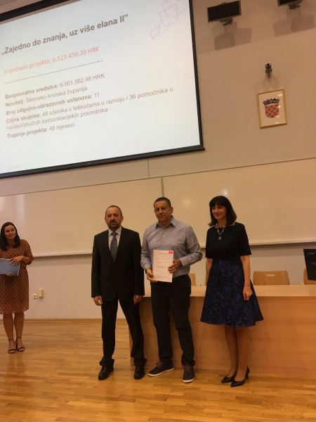 Projekt "Zajedno do znanja, uz više elana II" adresira problem neadekvatne podrške za učenike s teškoćama u razvoju, te se kroz uvođenje u rad pomoćnika u nastavi žele ostvariti cilj projekta, a to je smanjenje stope ranog napuštanja školovanja i pristup inkluzivnom obrazovanju kako bi učenici s teškoćama poboljšali vlastite obrazovne mogućnosti.