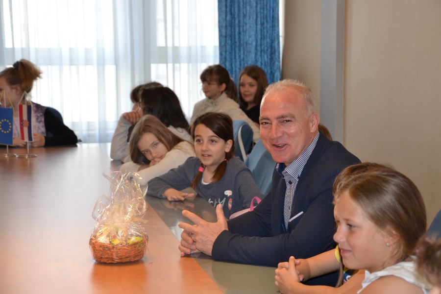 Radoznale učenike zanimalo je kako je biti župan, koliko je na toj funkciji, te što je uopće njegov posao. Svoju radost u razgovoru sa županom Paukom nisu krili pa su uslijedila pitanja i o njegovom najdražem jelu, gradu u županiji, a i puno pitanja s područja nogometa te željom da ih upravo župan poduči o igri.