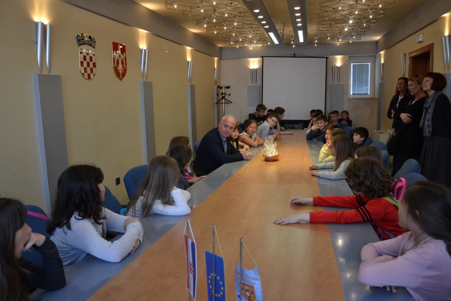 Župan Goran Pauk i pročelnica Upravnog odjela za prosvjetu, znanost, kulturu i šport Dijana Ercegović jutros su u Uredu župana primili učenike trećih razreda Osnovne škole Meterize.