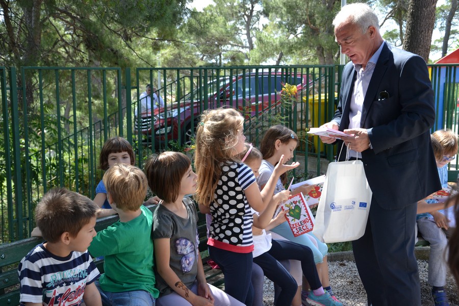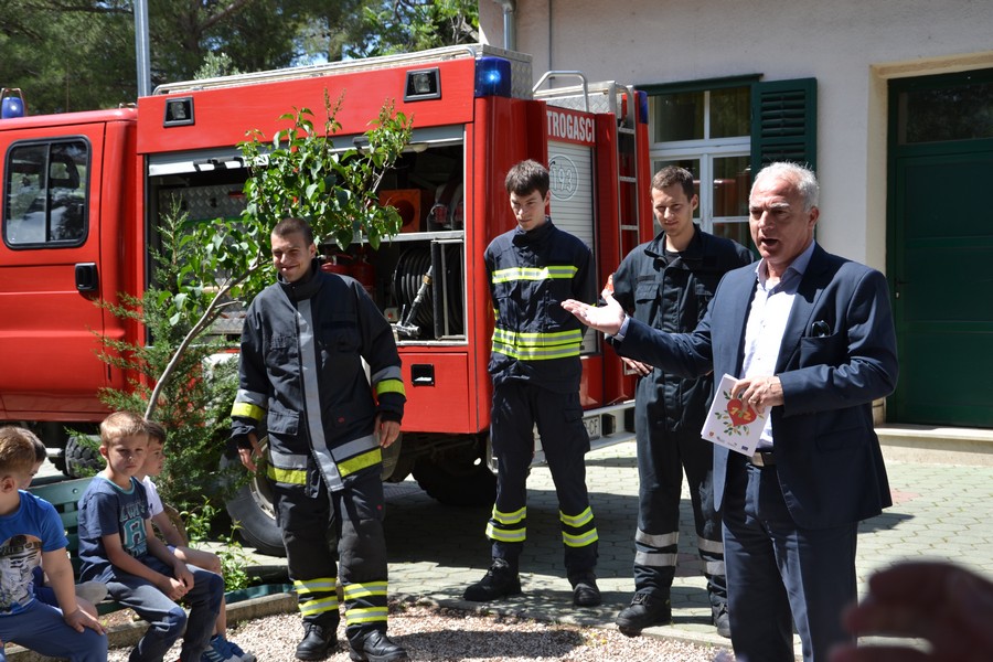 Župan Goran Pauk je pozdravio prisutne i objasnio mališanima o kakvom je projektu riječ, te im podijelio bojanke kroz koje će učiti o očuvanju šume i što napraviti ukoliko dođe do požara. "Vjerujem da vi već znate broj telefona koji je potrebno nazvati ukoliko uočite požar kako bi ovi naši hrabri momci došli i ugasili ga"- rekao je župan te istaknuo da je svibanj mjesec zaštite od požara kad se brojnim aktivnostima želi potaknuti ljude i djecu da uče o zaštiti od požara i paze na naše šume, kuće i sve što nas okružuje.