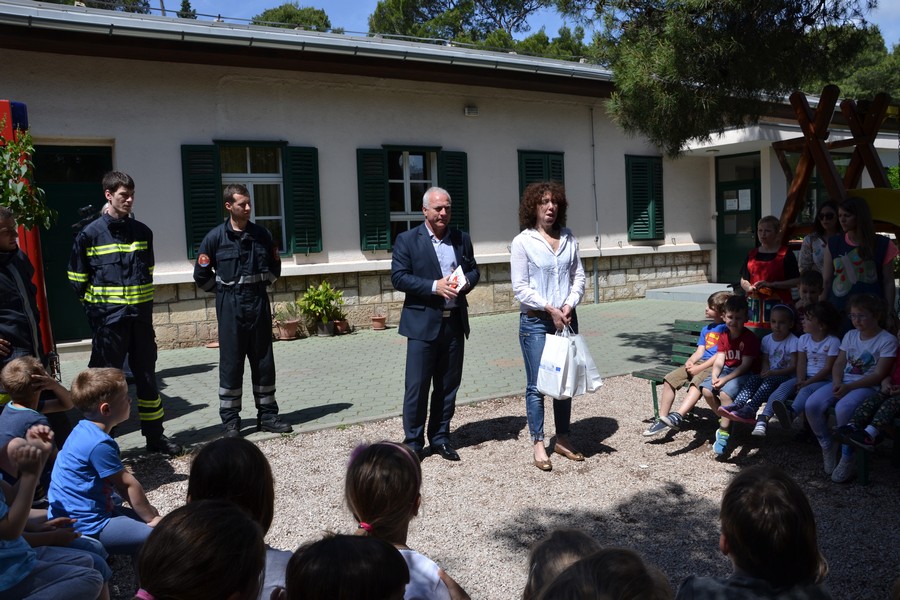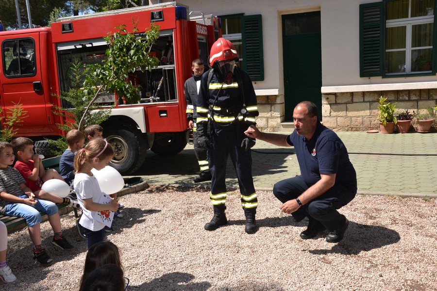 Djecu su posebno obradovali predstavnici Dobrovoljnog vatrogasnog društva Šibenik prezentacijom vatrogasnog vozila i opreme koja se koristi prilikom gašenja požara.