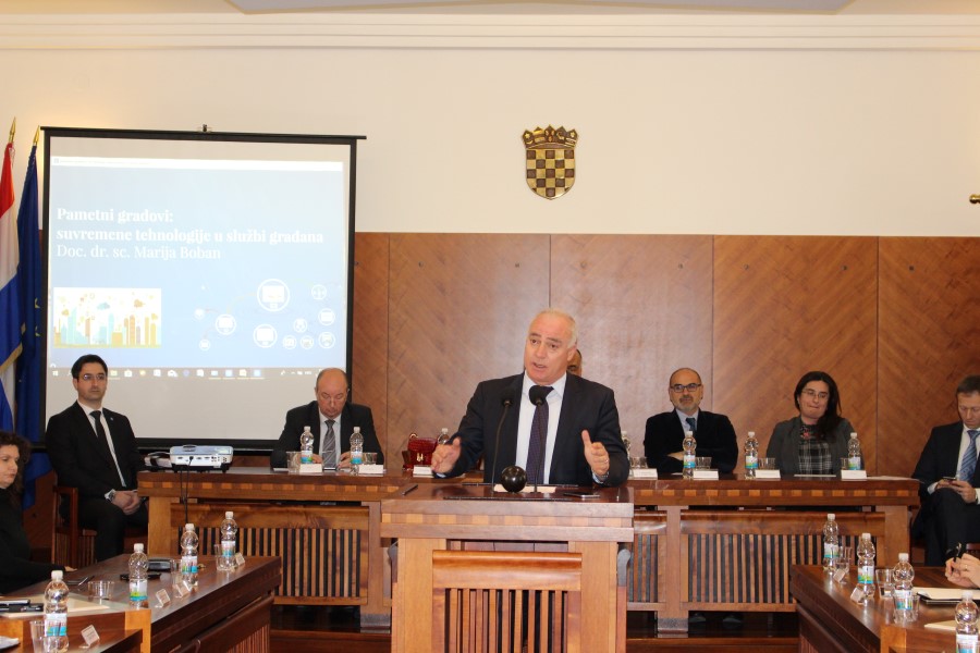 Skup je otvoren predavanjem predsjednika Vijeća HAKOMA, dr.sc. Dražena Lučića i docentice Pravnog fakulteta u Splitu dr. sc. Marije Boban, na temu Pametni gradovi: suvremene tehnologije u službi građana, a nastavljen predavanjem prof.dr.sc. Svena Gotovca, dekana Fakulteta elektrotehnike, strojarstva i brodogradnje Pametni gradovi- gradovi budućnosti.