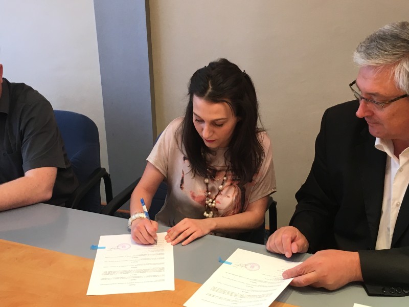 Galla i zamjenik župana Zoran Smolić potpisali su danas u Uredu župana Ugovor o profesionalnom i jezičnom usavršavanju. Potpisivanju Ugovora prisustvovali su i Krešimir Šakić, ravnatelj NP Krka i koordinatorica programa "Eurodyssee" Lucija Aužina.