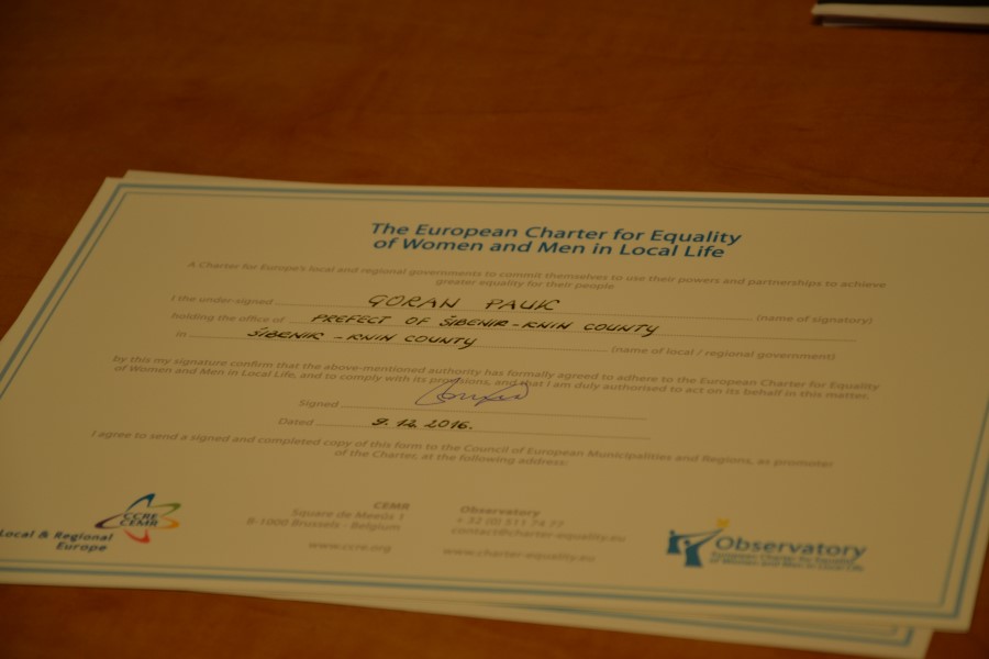 Nakon potpisivanja povelje, župan je izrazio zadovoljstvo što je Šibensko-kninska županija ušla u društvo 1500 lokalnih i regionalnih vlasti iz 32 države koje su se obvezale na provođenje odredbi Europske povelje. Potpisivanjem povelje Šibensko-kninska županija izrazila je političku volju za implementaciju politike ravnopravnosti spolova u sve segmente političkog, gospodarskog, društvenog i kulturnog života, sukladno svojim nadležnostima.