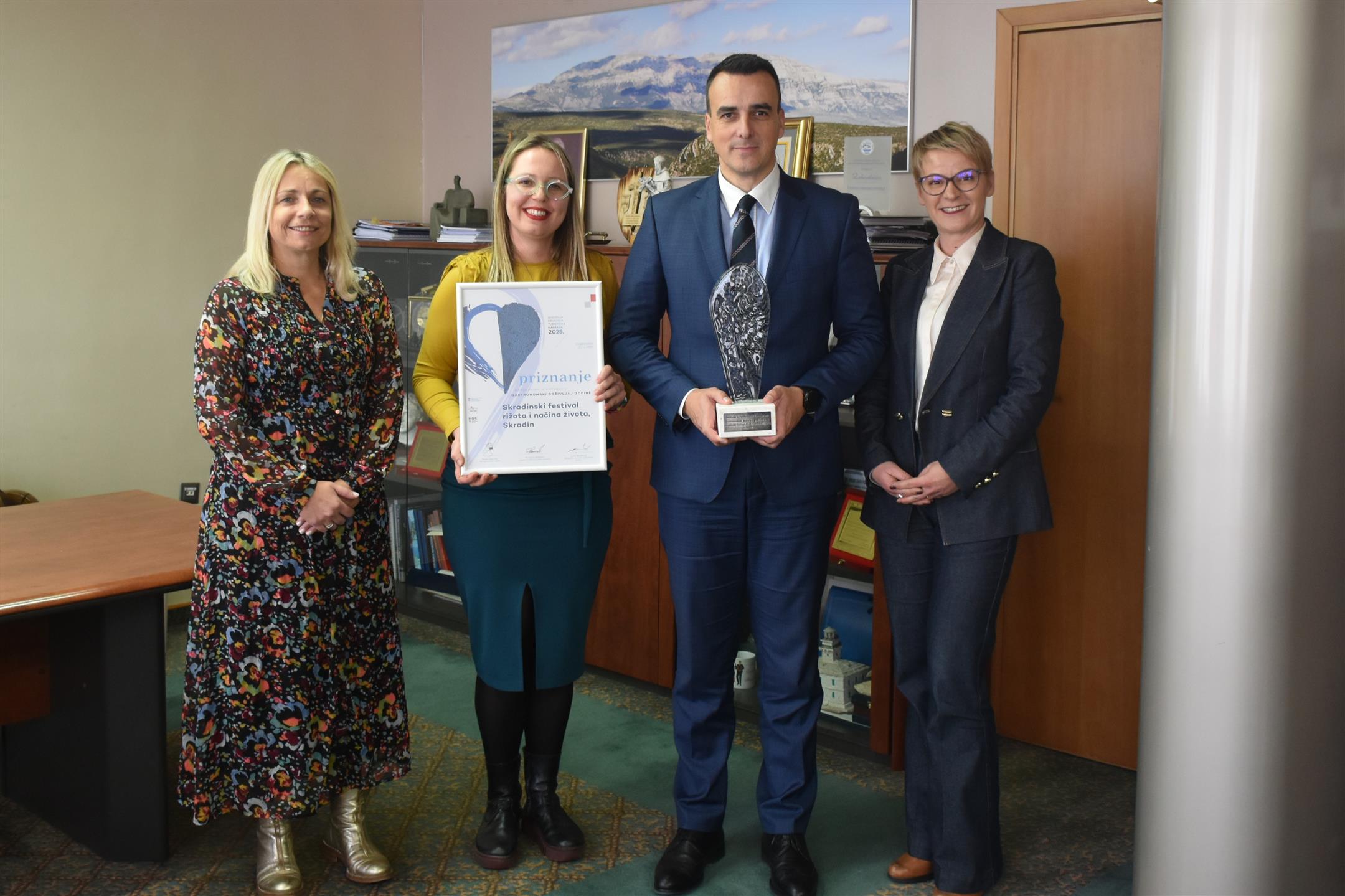 Laureate je danas, u društvu direktora županijske Turističke zajednice Krešimira Šakića i novimenovane resorne pročelnice Ivane Vudrag primio župan Šibensko-kninske županije Paško Rakić, uručivši im prigodne poklone. Tom je prilikom župan čestitao dobitnicima nagrada i priznanja, zahvalivši im na njihovom predanom radu i sjajnim rezultatima kojima našu županiju u najljepšem svjetlu predstavljaju u zemlji i svijetu.